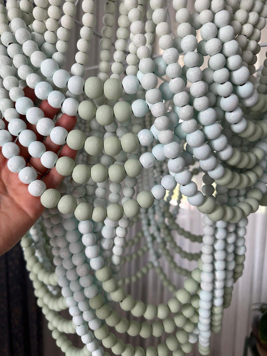 Coral Chandelier, Blue Beaded Light, Beach House Light, Rustic Living Room Light, Nursery Pendant Light,Wood Bead Light, Mother's Day Gift