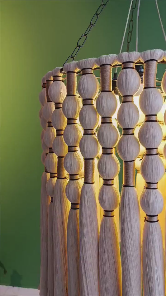 Cotton Tassel Pendant Light, Bohemian Light, Modern Macrame Light, Organic Home Decor, Custom Macrame Chandelier, Woven Chandelier,